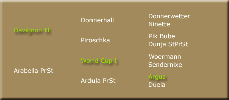 Derzeit wird Antigone von ihren Besitzern in der Zucht eingesetzt. Im März 2007 kam ihr Hengstfohlen v. Rascalino (Rotspon - Velten Third xx) zur Welt, der sich für das Bundeschampionat der Hengstfohlen qualifizieren konnte. |
