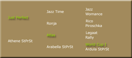 Aus der holländischen Linie des Jazz stammend sorgte Just Perfect bereits für gute Leistungen seinerseits. Seine sportliche Karriere begann als junges Reitpferd durch die zweimalige Qualifikation zum deutschen Bundeschampionat. Mittlerweile verbucht er mehrere Siege und Platzierungen bis zur Dressurklasse S. Ein moderner Hengst dessen meist langbeinige Fohlen oft mit bildschönen Gesichtern und enormer Bewegungsqualität ausgestattet sind.